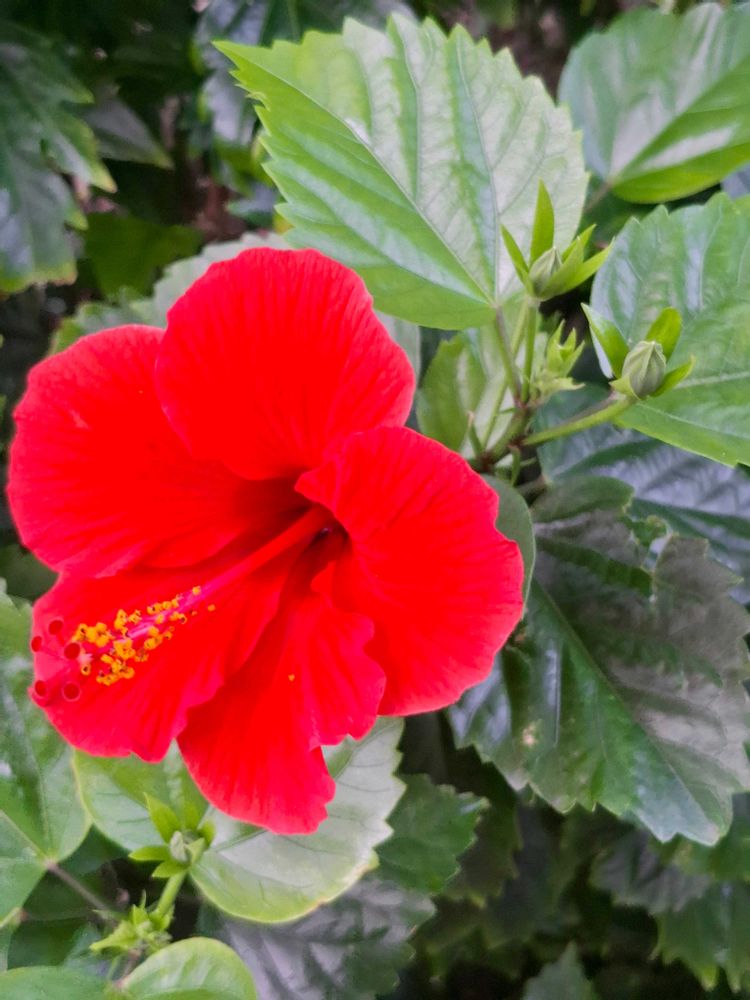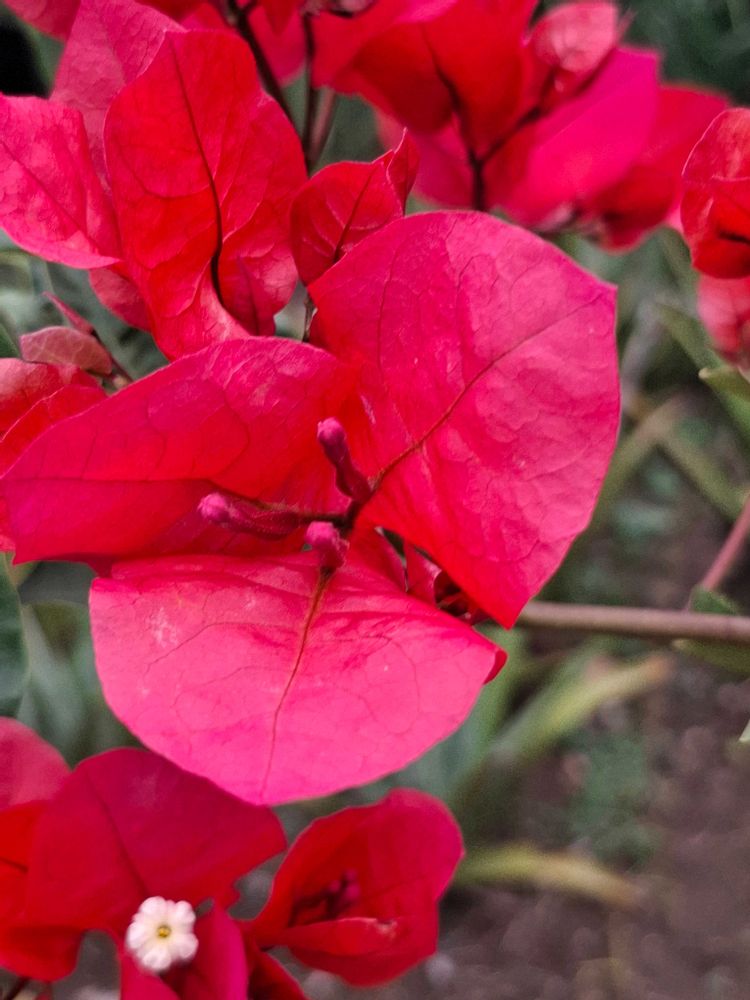 紅葉を待ちわびている中で、健気に一生懸命咲いていた夏の花🌼ブーゲンビリアやハイビスカス🌺赤色が鮮やかに輝いていました❤