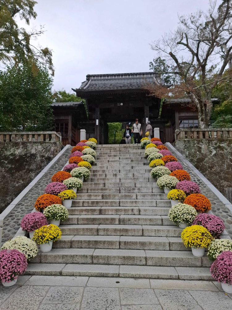 修善寺はもう秋の準備がバッチリ!山門に続く階段には、ガーデンマムジジが見事でした🙆