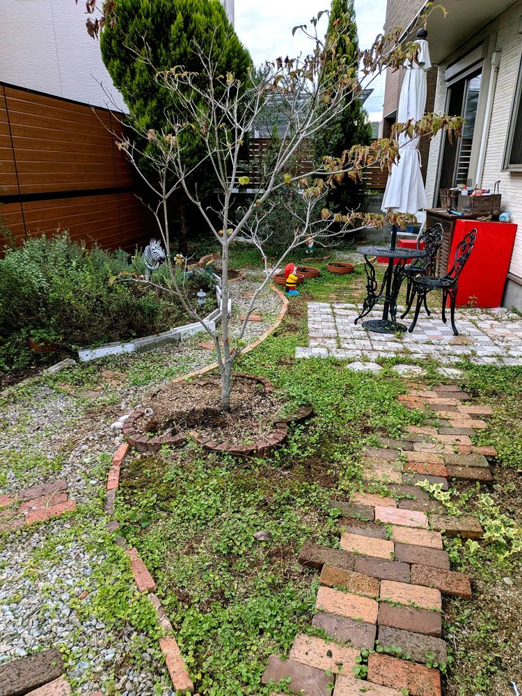 まだ、樹や花など色々植えてみたりしてお庭作り模索中です💦 いつか、樹の木陰で草取りをしながら、疲れたらお茶ができるようなお庭になったらなぁ☺️ 何年か後を想像しつつ、出来るときにコツコツ頑張っています🏵️