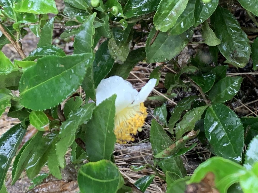 お山のパトロール途中の茶畑でお茶の花が咲いてました😀また雨☔の日😓雨の日仕事で島にんにく🧄の醤油漬け用の皮むき😀何度もワンワンのカールくん🐕そのたびに抱えて外につれてオシッコ❓ウンチ❓構ってちゃん❓作業が進みません😓お昼に19℃で寒くなって犬舎の冬支度😅入り口を塞いでお外が見えないとまたワンワン😓夕方には12℃でした💦寒っ🥶