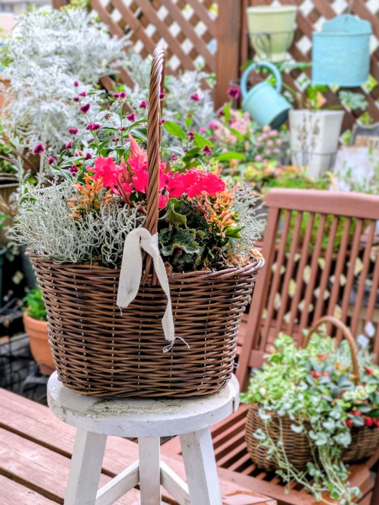 かごの寄せ植えのギャザリングとっても素敵ですね🥰