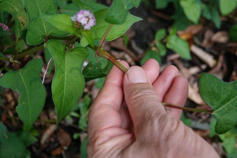 全体にミゾソバより大きく、葉は長さ5.5〜11㎝、幅3.5〜7㎝である。ミゾソバによく似るが、大きさの他に、葉の中央部のくびれが大きいこと、葉柄の翼が幅3㎜と大きくて目立つこと、閉鎖花をつける地中茎が10〜30㎝と長いことなどが区別点である。花期は8〜10月。(愛媛県レッドデータブックより引用しています)