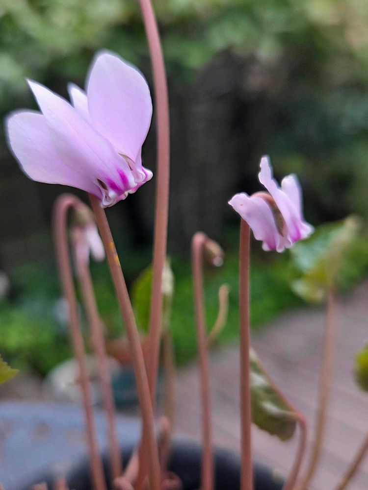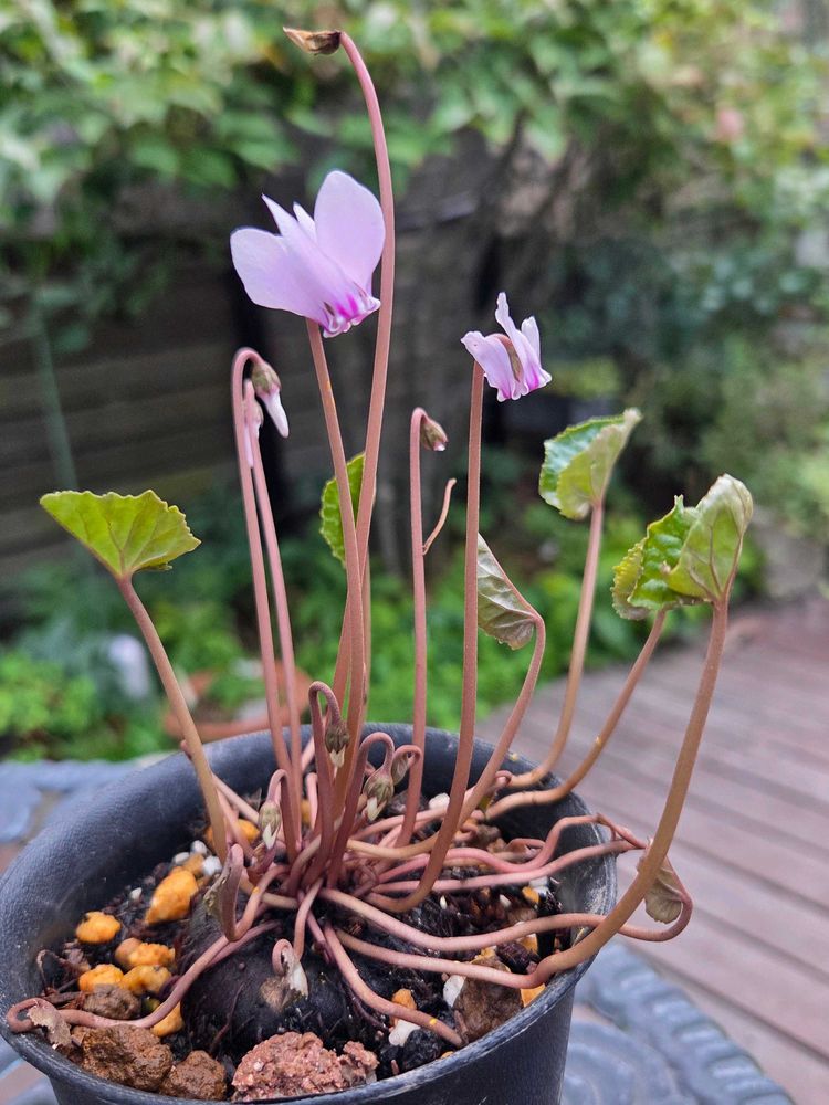 原種シクラメン、ヘデリフォリウムが可愛いお花を咲かせています。
