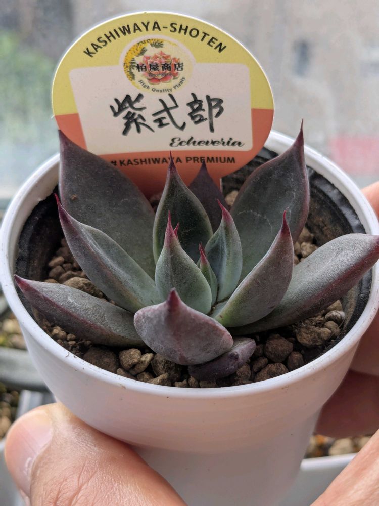 ①紫式部(柏屋商店)さん。やっと私の手の届くところに🤣多くの場合、ポリポット+a25なのですが、この子は鉢底に手で穴開けたオリジナル?鉢。珍しい👀