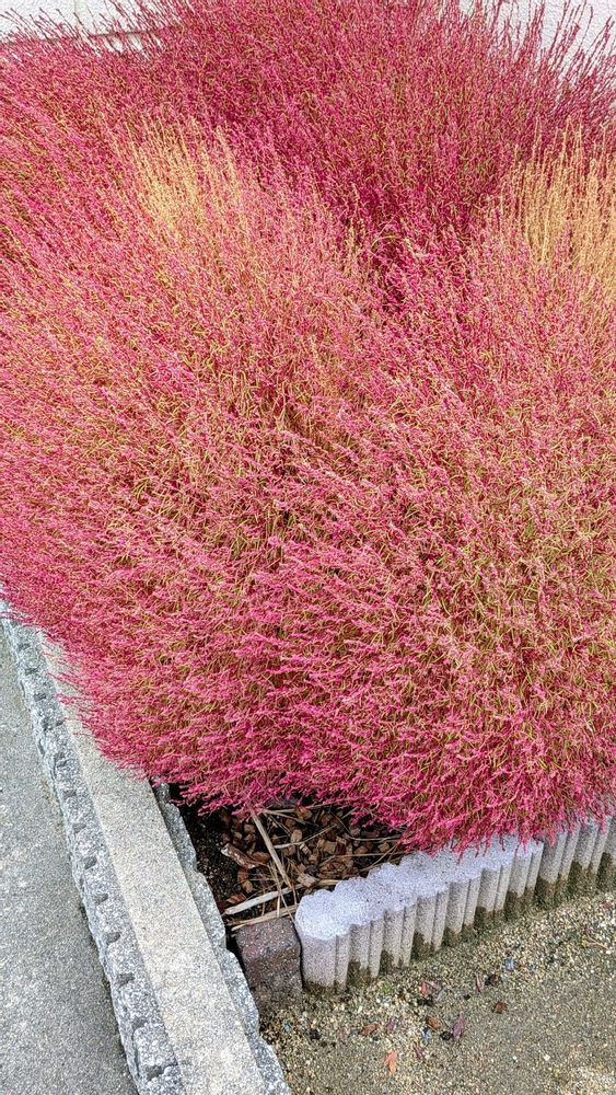 マンションの花壇のコキアです。一番日があたるところが紅葉してます。