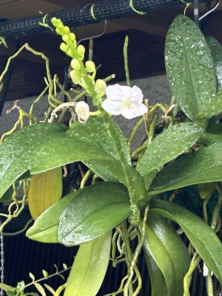 2025/10/21 記録用・本日の玄関先のミニ胡蝶蘭。せっかく花が咲きはじめてくれたけど朝8時の時点で外気温17度位。今週の最低気温は15度を切る模様。