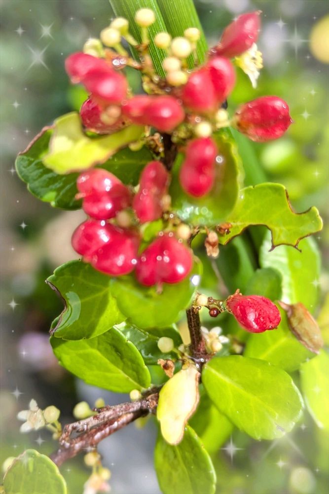 小さな真っ赤なハート形の実 とっても可愛いね❤️