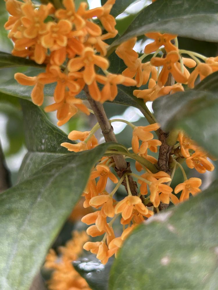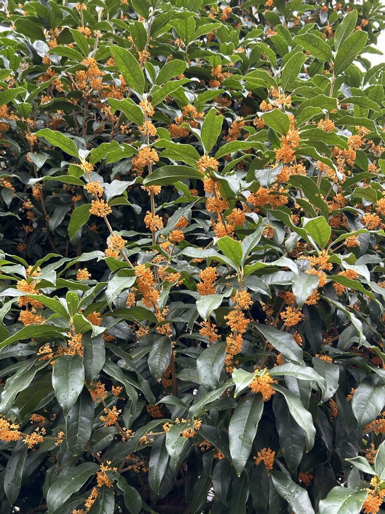 秋に橙黄色の花を咲かせ甘い香りを放ちます(日本三大芳香木)