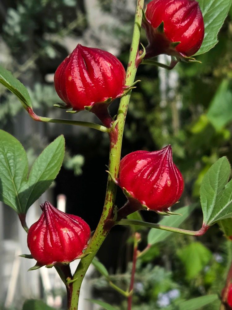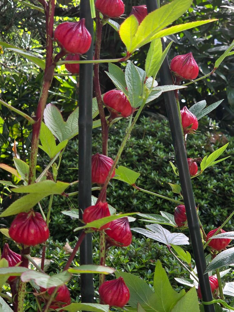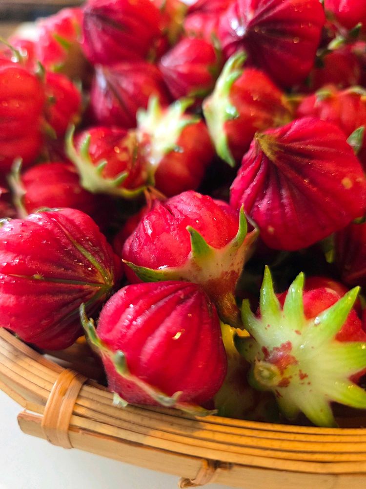 ローゼルを植えた一回目は、ほんのちょっとしか成らなかったのですが、今年はカゴいっぱいに収穫出来ました。