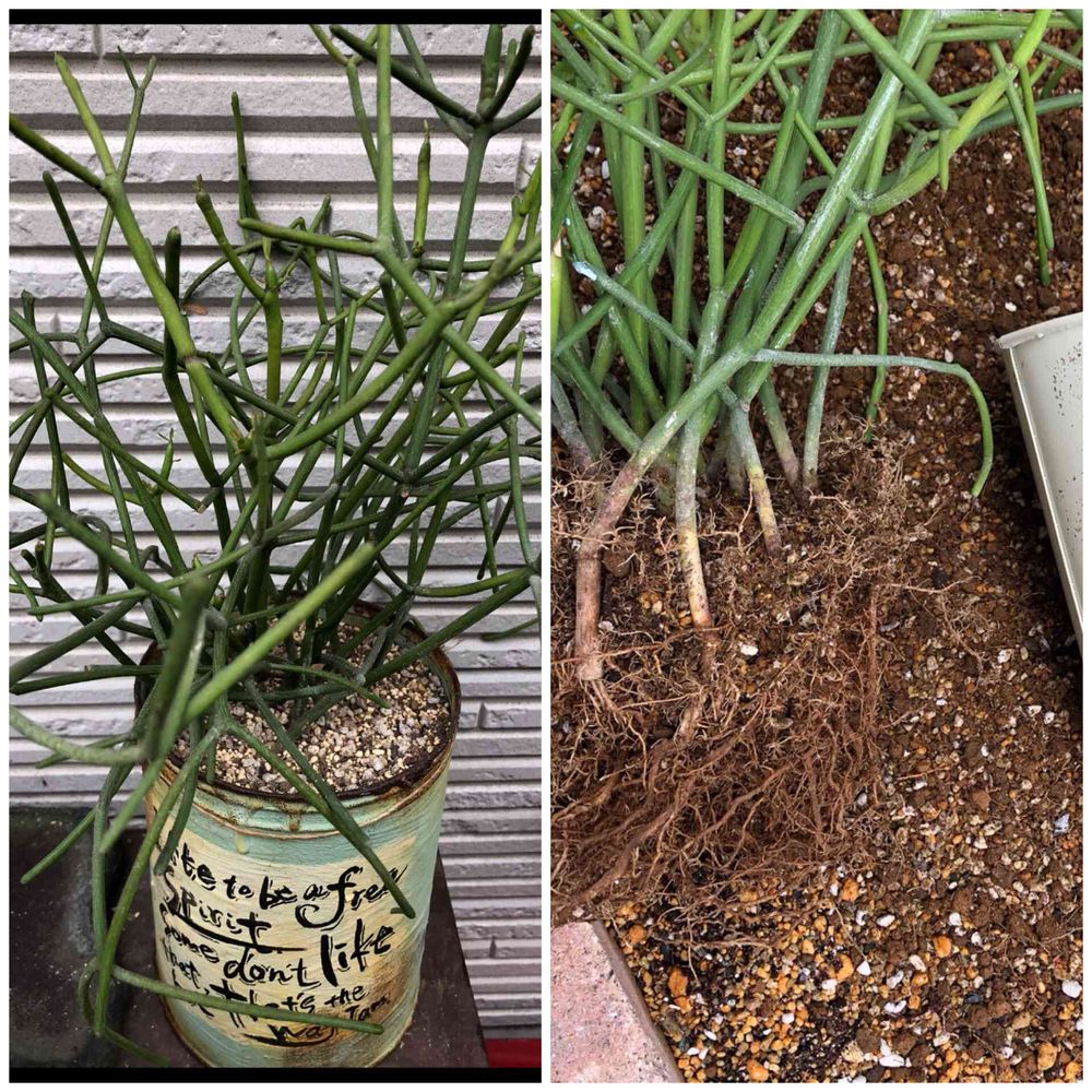 ギチギチに根が張って根詰まりしてた、ミルクブッシュを植え替え✨