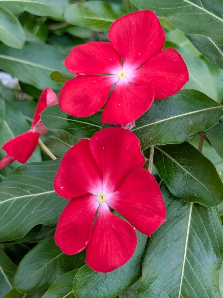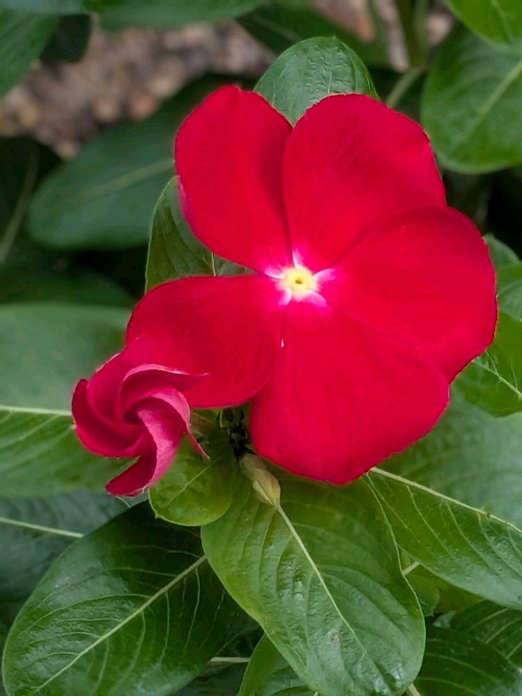 ニチニチソウはピンク🩷も可愛いけれど、赤❤️もなかなかです😊