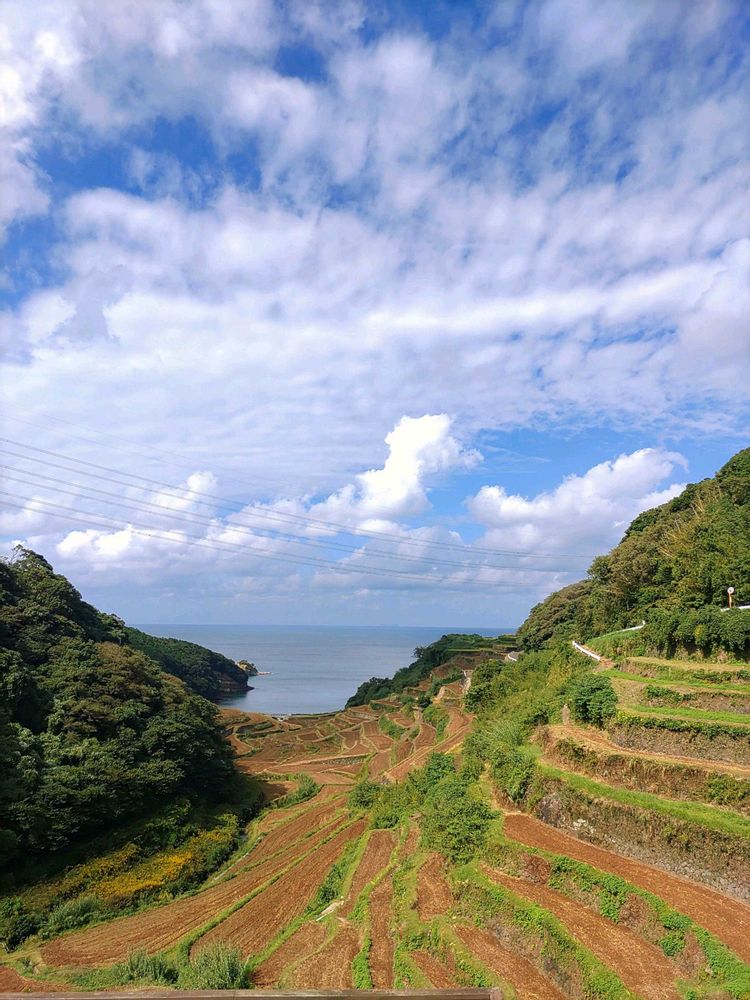 稲刈りの後でちょっと寂しかったのですが、空と海、風が心地良かったです。😉