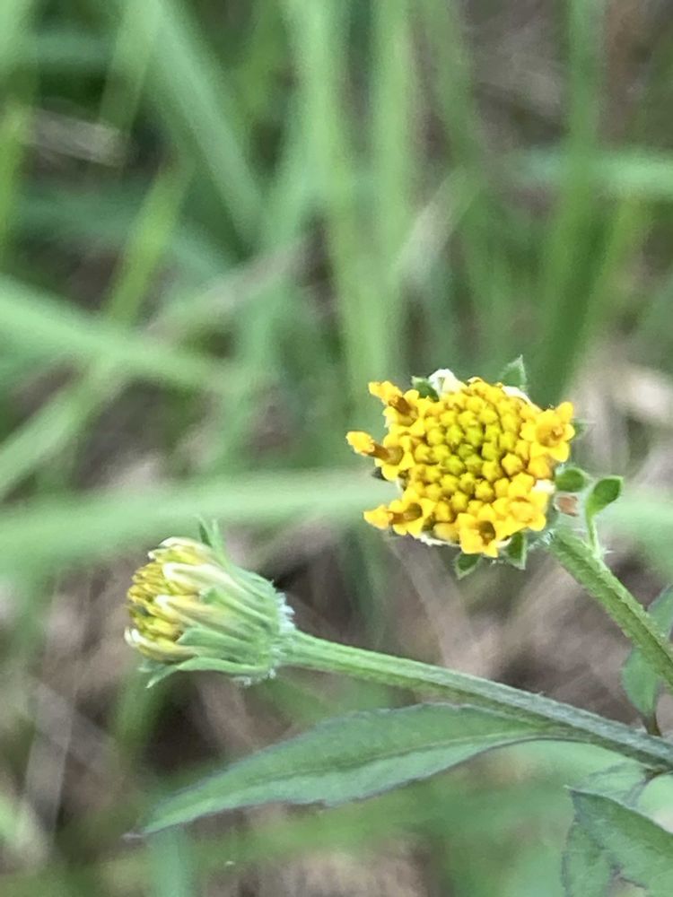 筒状花のみ目立って、キクのような舌状花は無いようです。アメリカセンダングサに見られる総苞片も見えませんね。