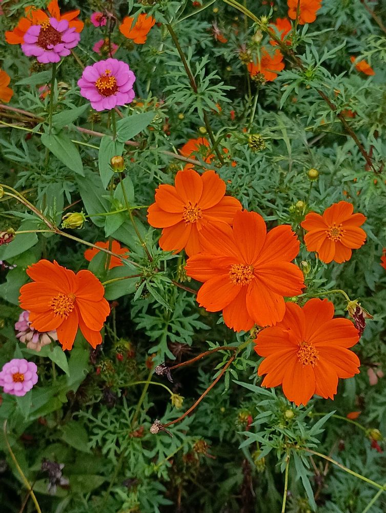キバナコスモス&ジニア🧡💗🌿