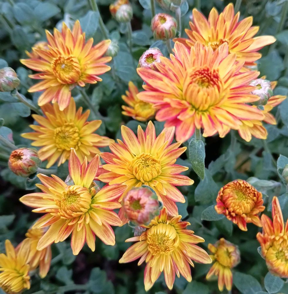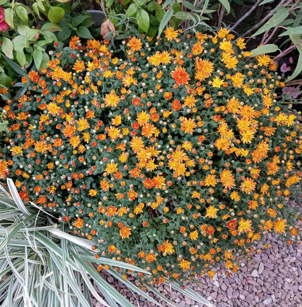 咲き出しました、ベルギーマム。せっかくなので玄関脇に…。プランターがテラコッタなので凄い重くてズルズル引きずって移動しました。花が終わったらプラのプランターに植え替えよう😅