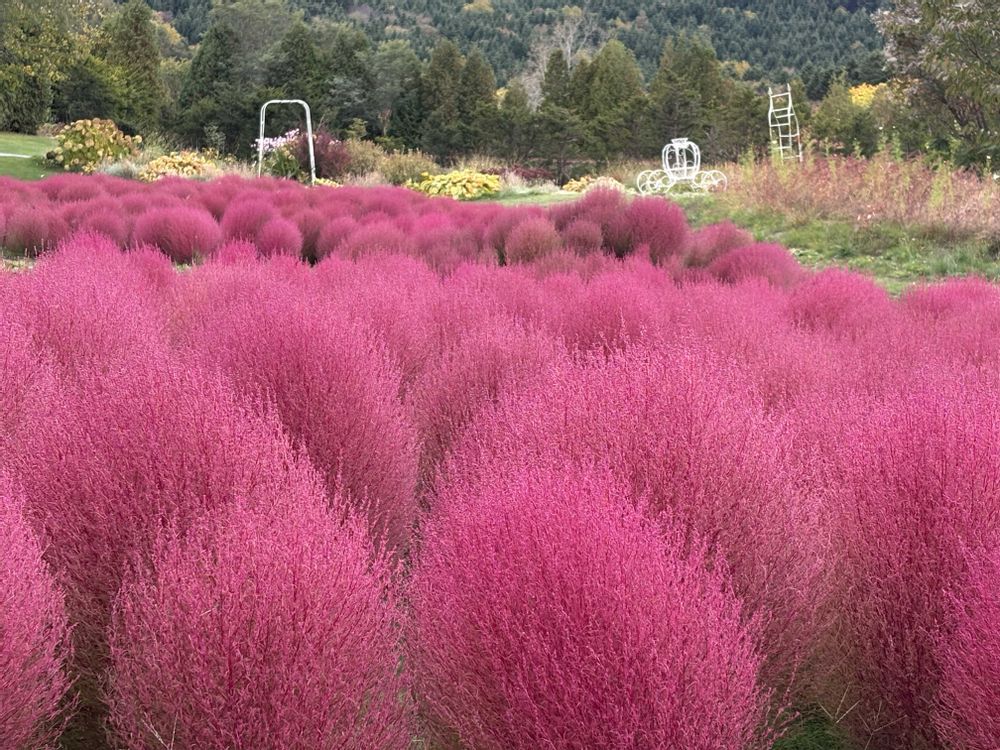 秋らしい色合いのコキアが綺麗なピンク色ですね💕💕(,,ᴗ ᴗ,,)*.゚♡