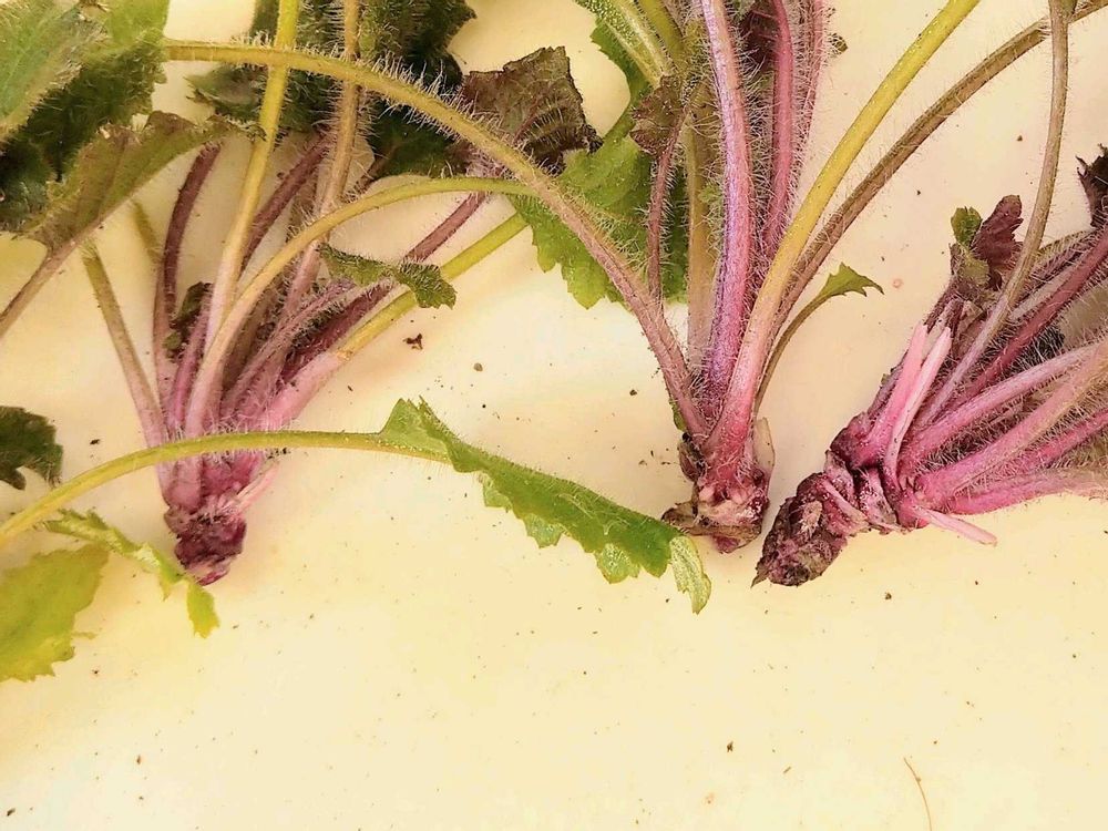 2️⃣細い根を全部取り除き、ワサビの様にし、綺麗な土をポットに入れ、浅く挿す