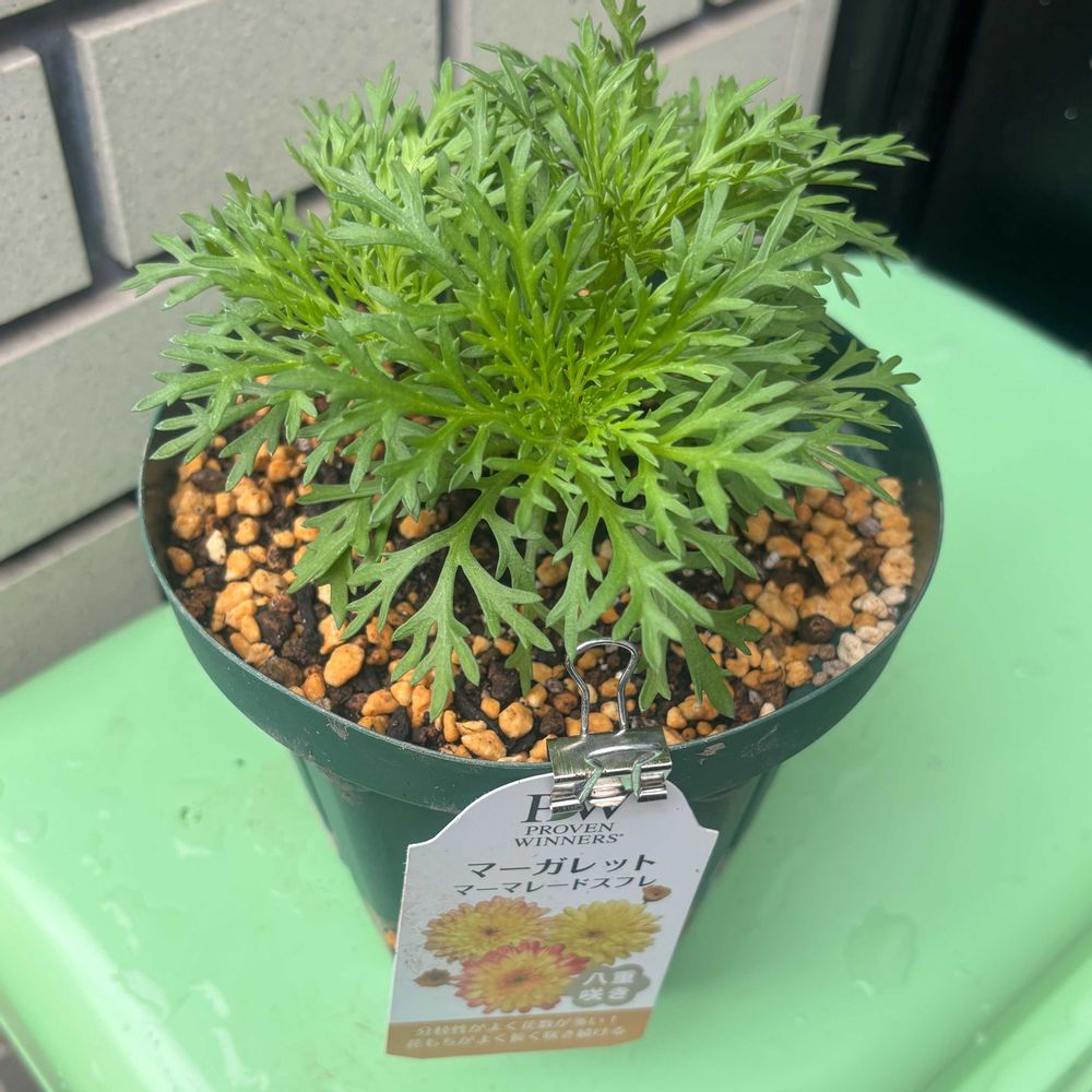 ③挿し芽で夏越ししたボンザマーガレットのサンセットオレンジ 株元が若干木質化していたので鉢増し&深植えしました❣️