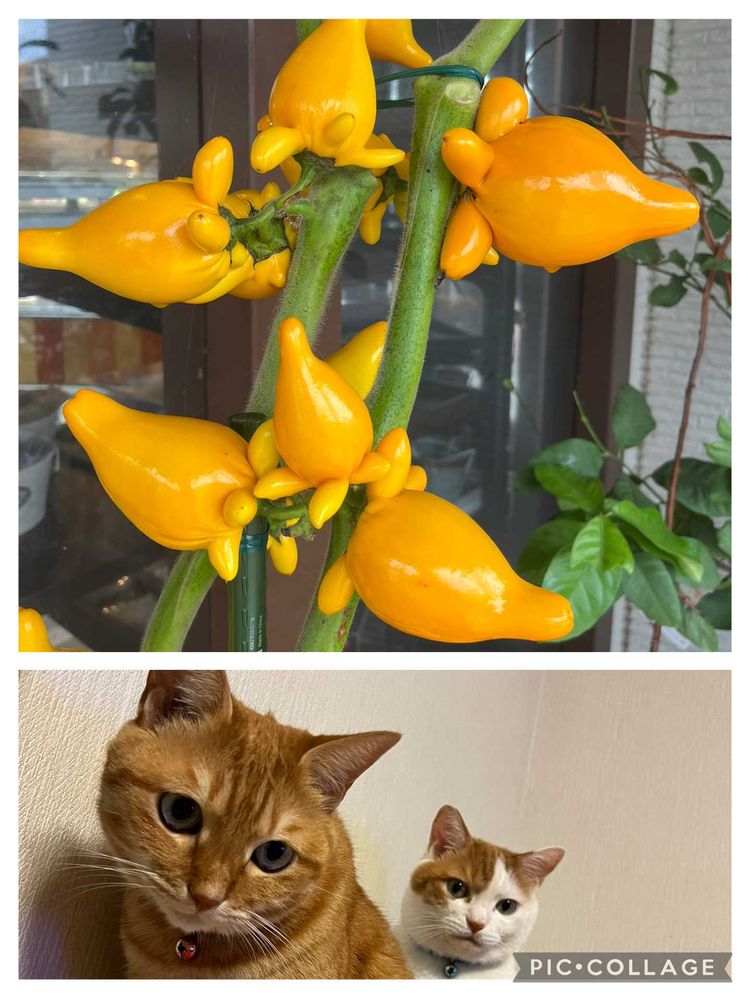 35年前、アレンジのお稽古で初めて見た時にはびっくり‼️ 先生はキチガイナスと説明してくれました。すごく衝撃的なネーミングでまたまたびっくり。最近はツノナスと呼ぶようですよ😅
