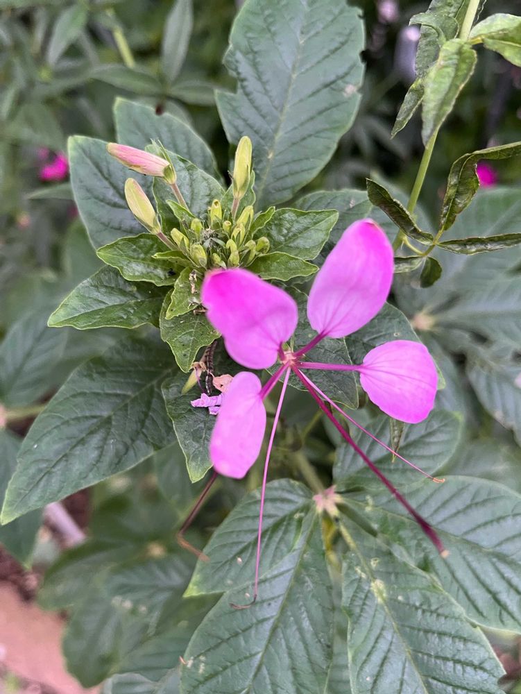 ⑤ クレオメ(西洋風蝶草) 一昨年まで植えていましたが、そのコボレダネで2年ぶりに咲きました