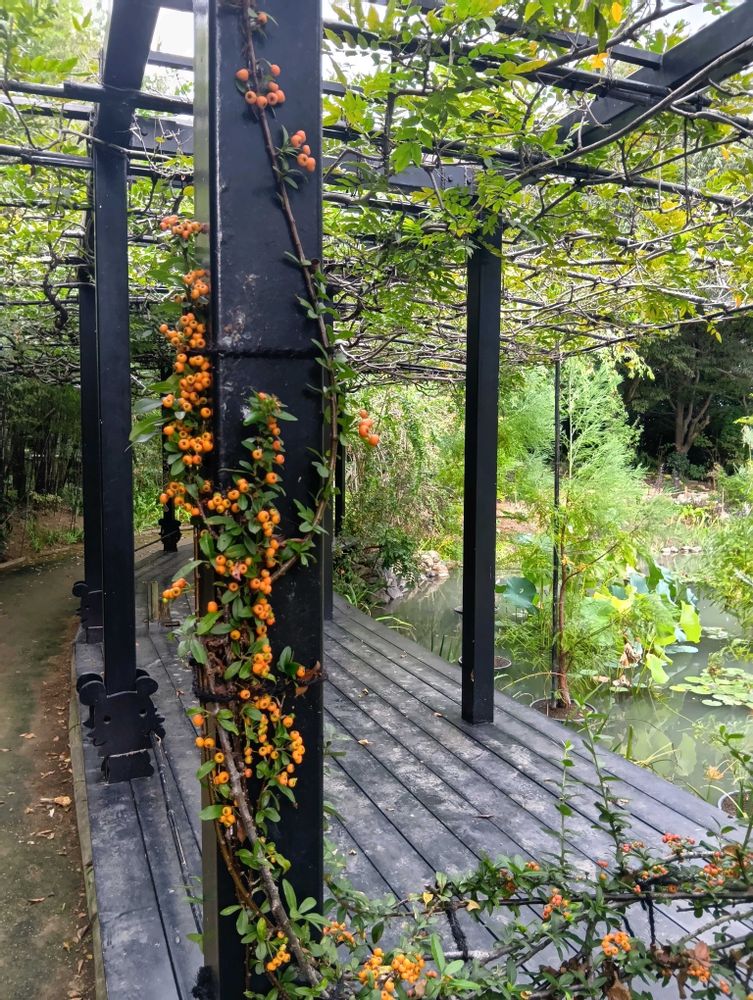 ⑤黒のパーゴラに映えるピラカンサスもオレンジの実です💛