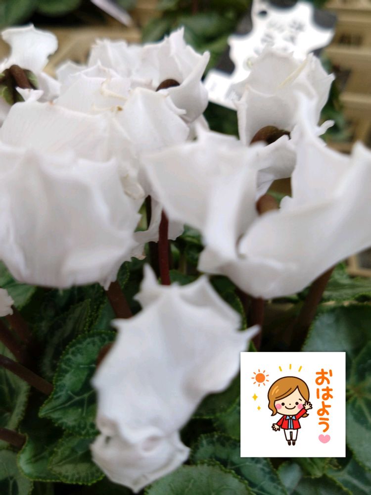 シクラメン,白い花,外出先にての投稿画像