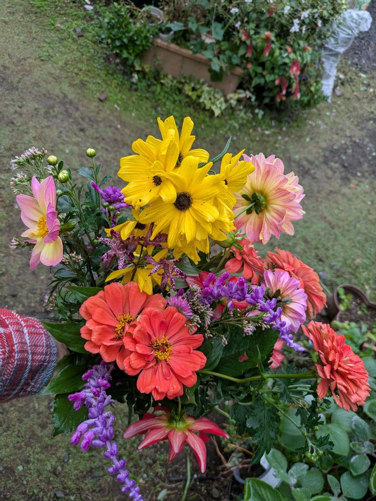 ダリア,キンモクセイ(金木犀),今月のお墓参りフラワーの投稿画像