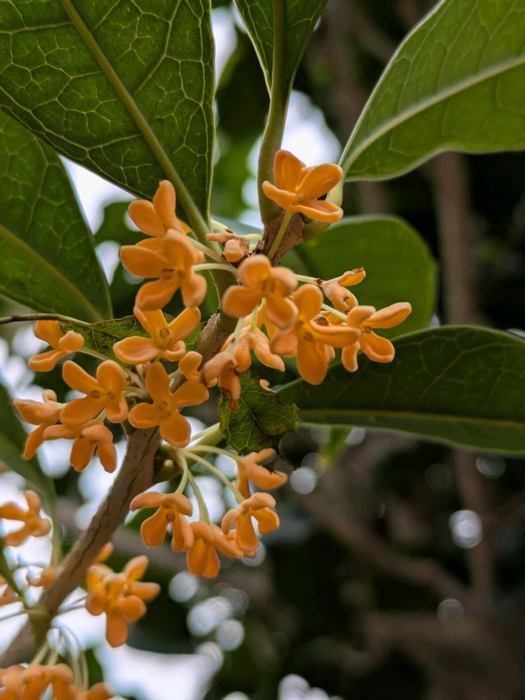 昨日、サルスベリ剪定していて、やっとキンモクセイの開花を確認。