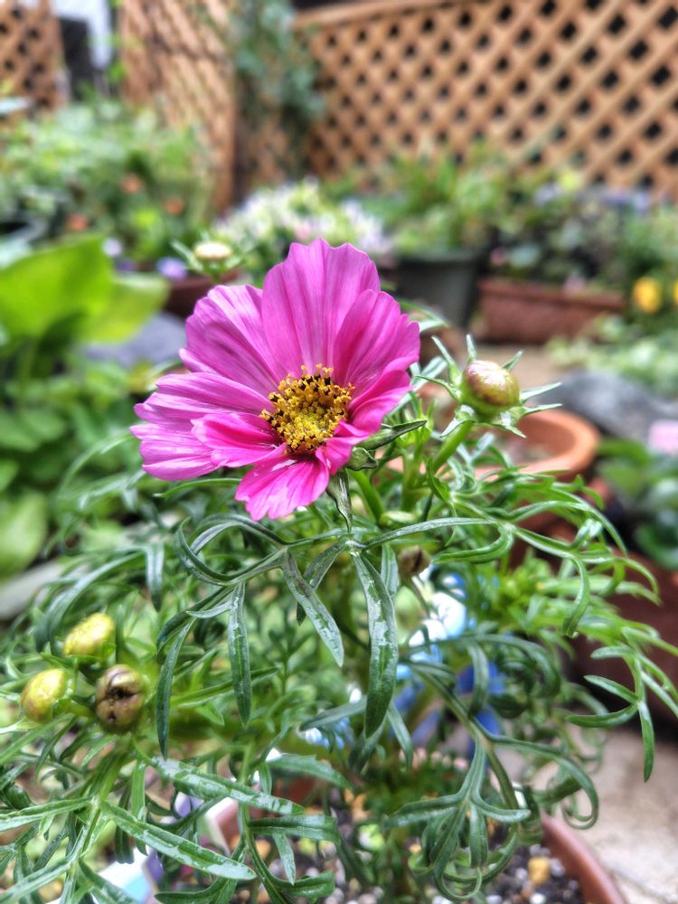 ①一輪目の秋桜が咲きました🙌。良い色🩷!
