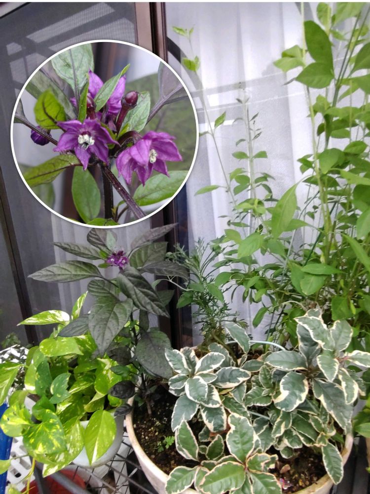 観賞用のとうがらしのお花!初めて観ました!可愛らしい小さく濃い💜紫色!超好きな色です!