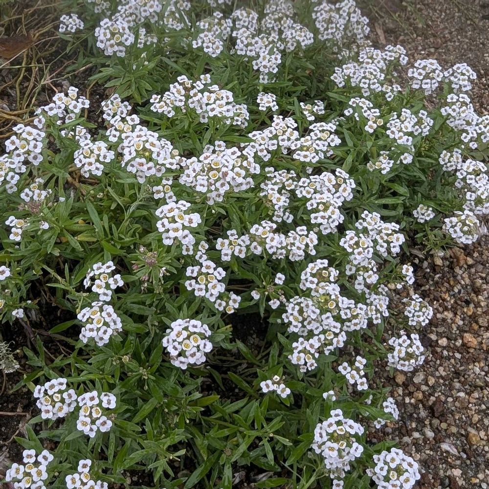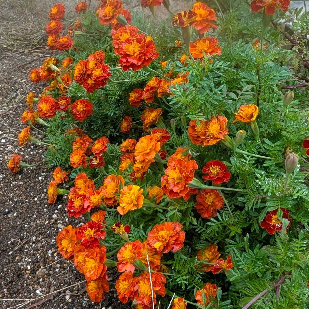 スイートアリッサムもマリゴも、こぼれ種からとは!びっくり~😃