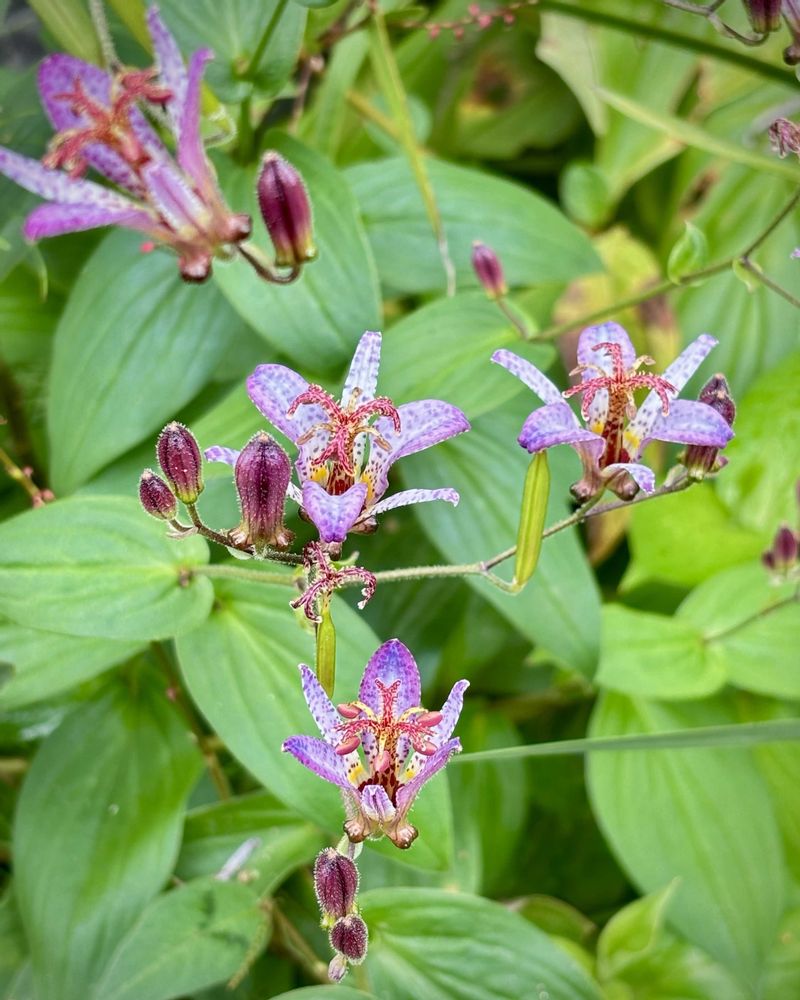 花、葉の付き方も違いますが、紫色の斑点が濃く美しいです。🌸🤗