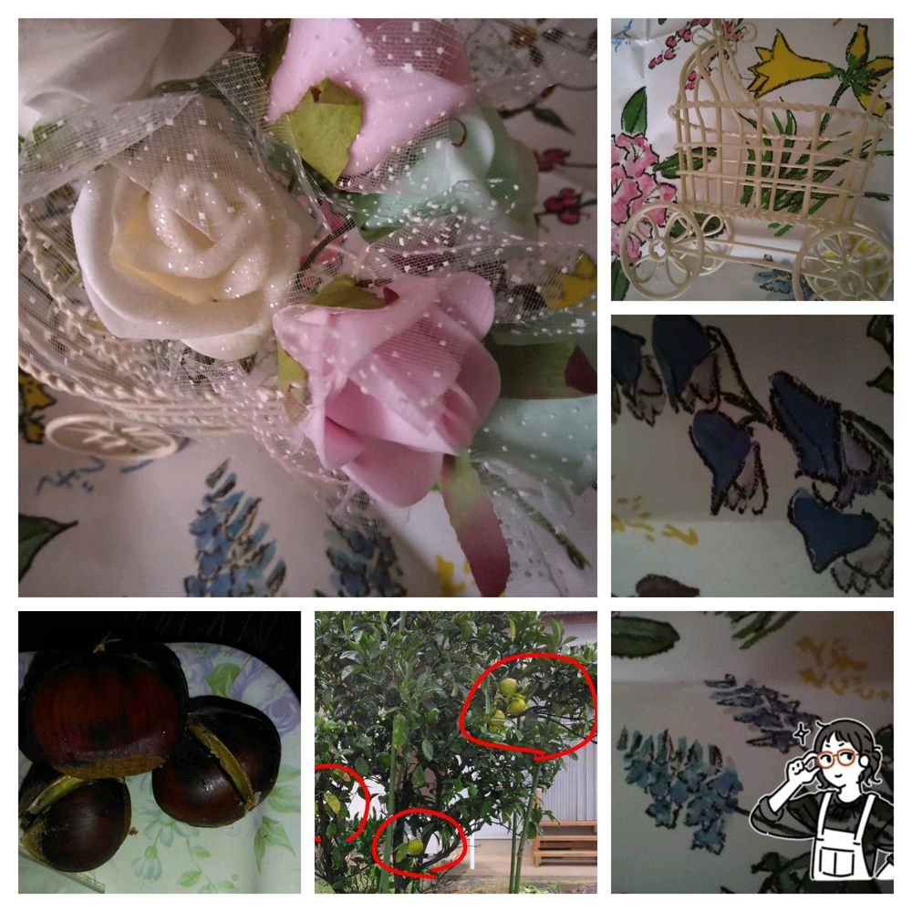 部屋の造花の薔薇🌹と六花亭さんの包装紙が見つかり 以前は紙袋を載せましたが、描かれた花の名前とか調べてみたりして 今日はこんな感じに。