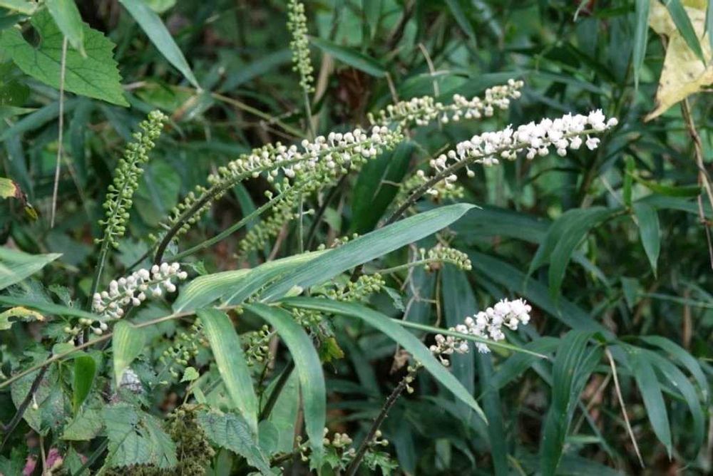 花序は総状、長さ35㌢以下、基本分岐しない。雄花と両性花が混生。