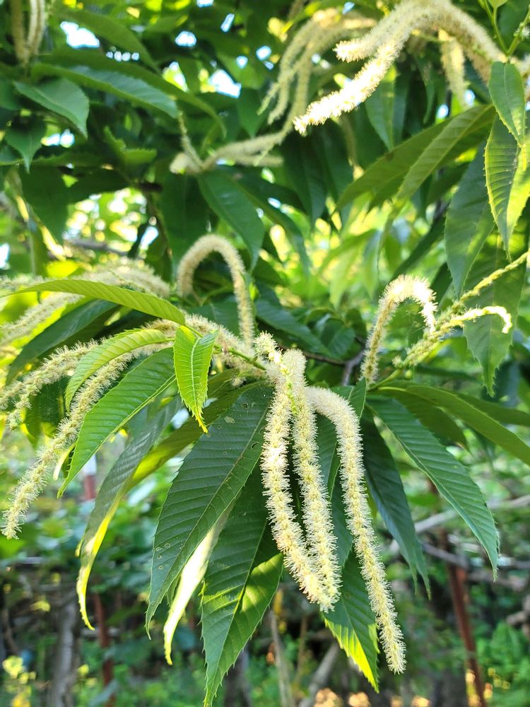 白く長い紐状の花が、あのイガグリに🟢なるのが✨不思議ですよね🤔