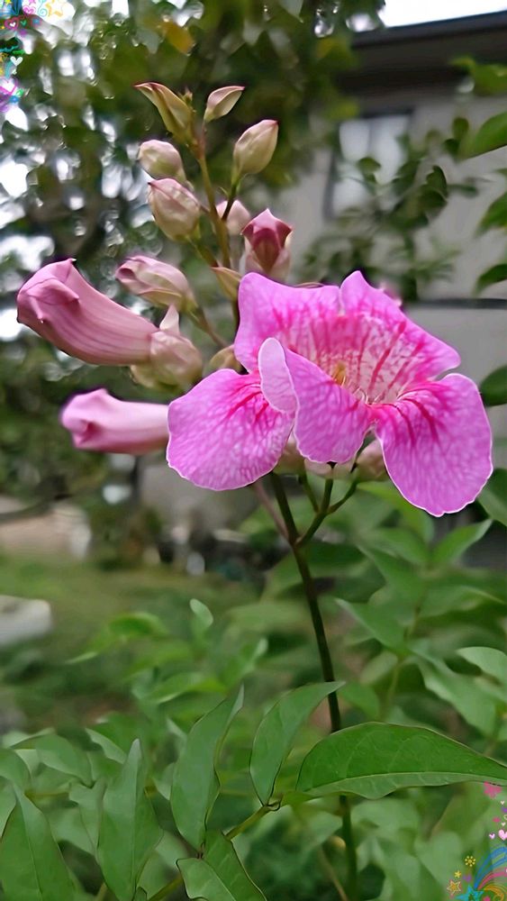 濃いピンクのノウゼンカズラが咲きました(≧∇≦)b