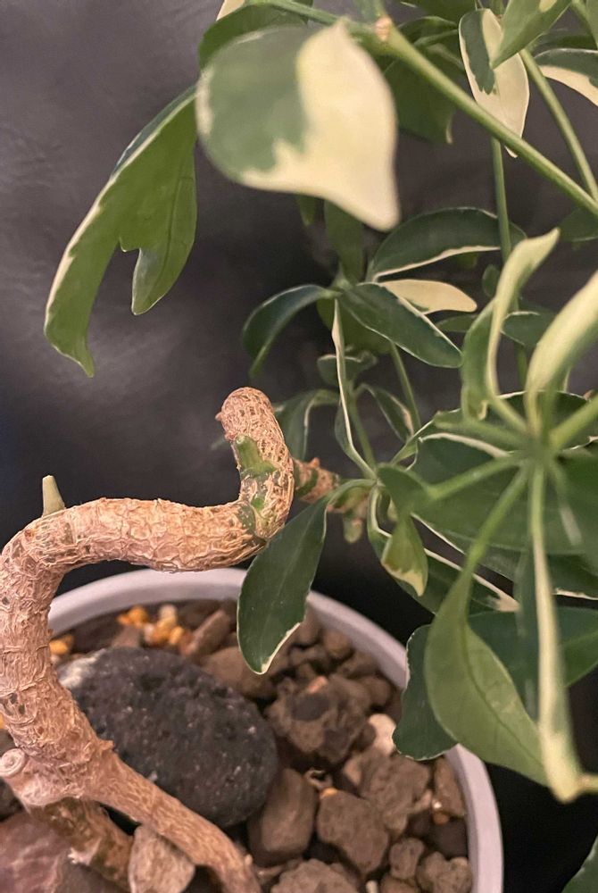 シェフレラさん、かなり曲がってますね。🪴植え替えたらまた見せてね。
