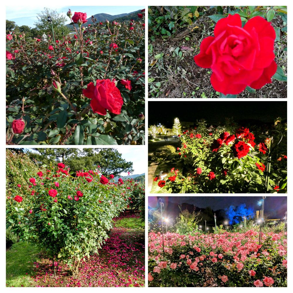 秋薔薇🌹🌹が満開で✨イルミネーションでライトアップされた薔薇も落ちた花びら♥️も素敵でした😍💖