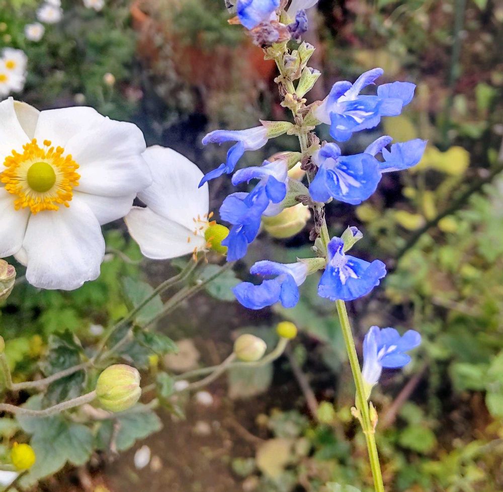 このお花も大きくなって、起こしても起こしても秋明菊に倒れかかってしまいます🌱