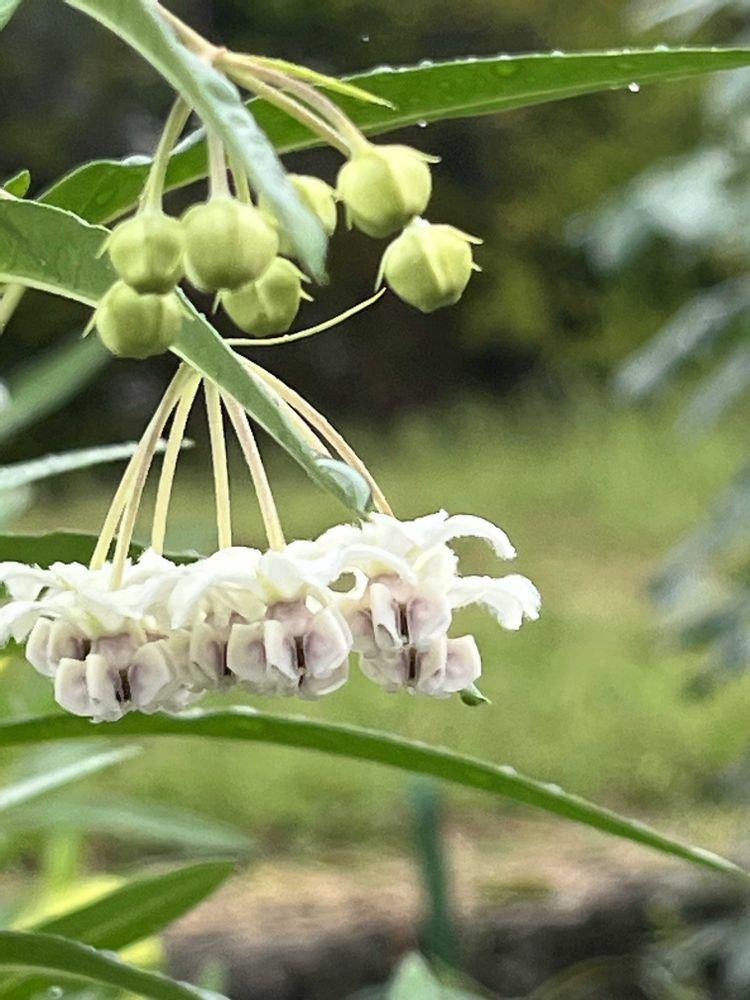 💚🤍フウセントウワタのお花、変わってますよね😊下から見たらどんなお顔なのか撮りたかったのですが……🤔