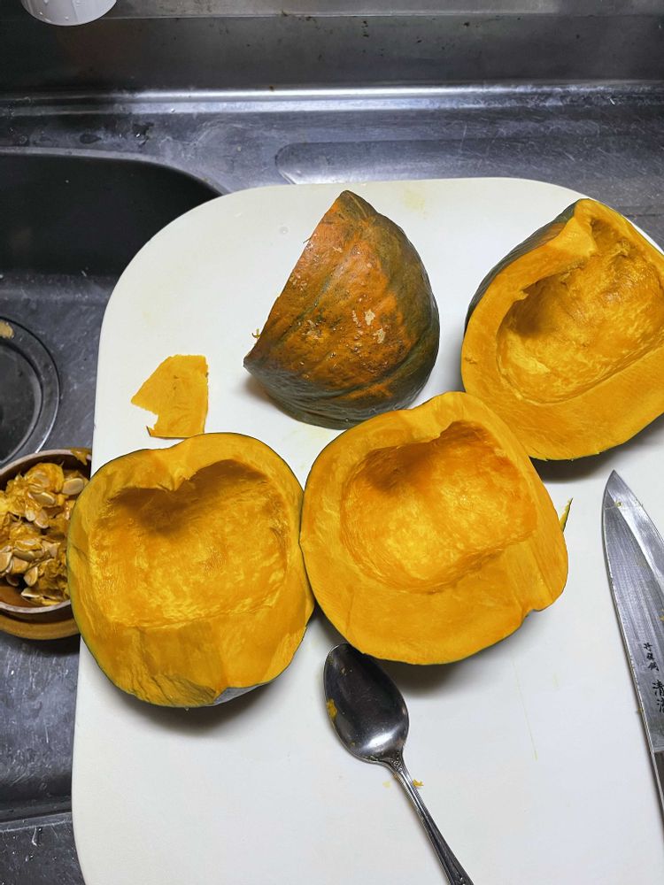 カボチャの皮って水分飛ばすのにこんなにしぶといとは思いませんでした〜😆