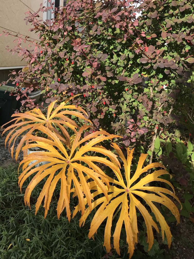 「ヤブレガサ」太陽の光で紅葉🍁が綺麗です❣️