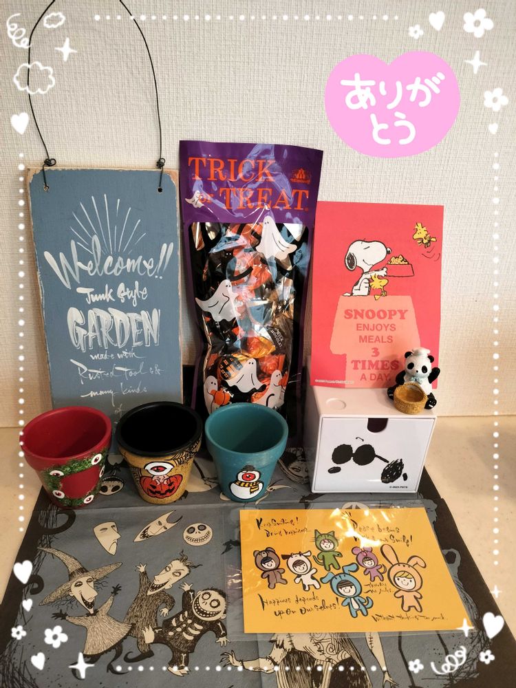 2枚目~は素敵便🎁のご紹介😍 箱から出るわ出るわ宝物😆💞 トトロのリメ鉢もカワユス〜😍💘💘💘 持ってないハオルチアさんも2種類入ってた😂斑入りもあるね💚🤍