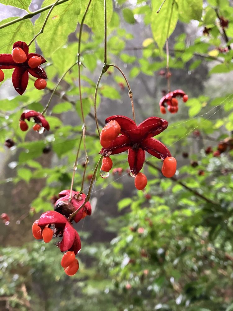 ③ツリバナの実も雫を纏って