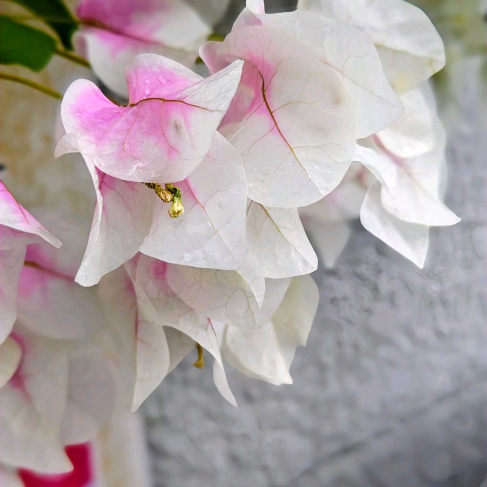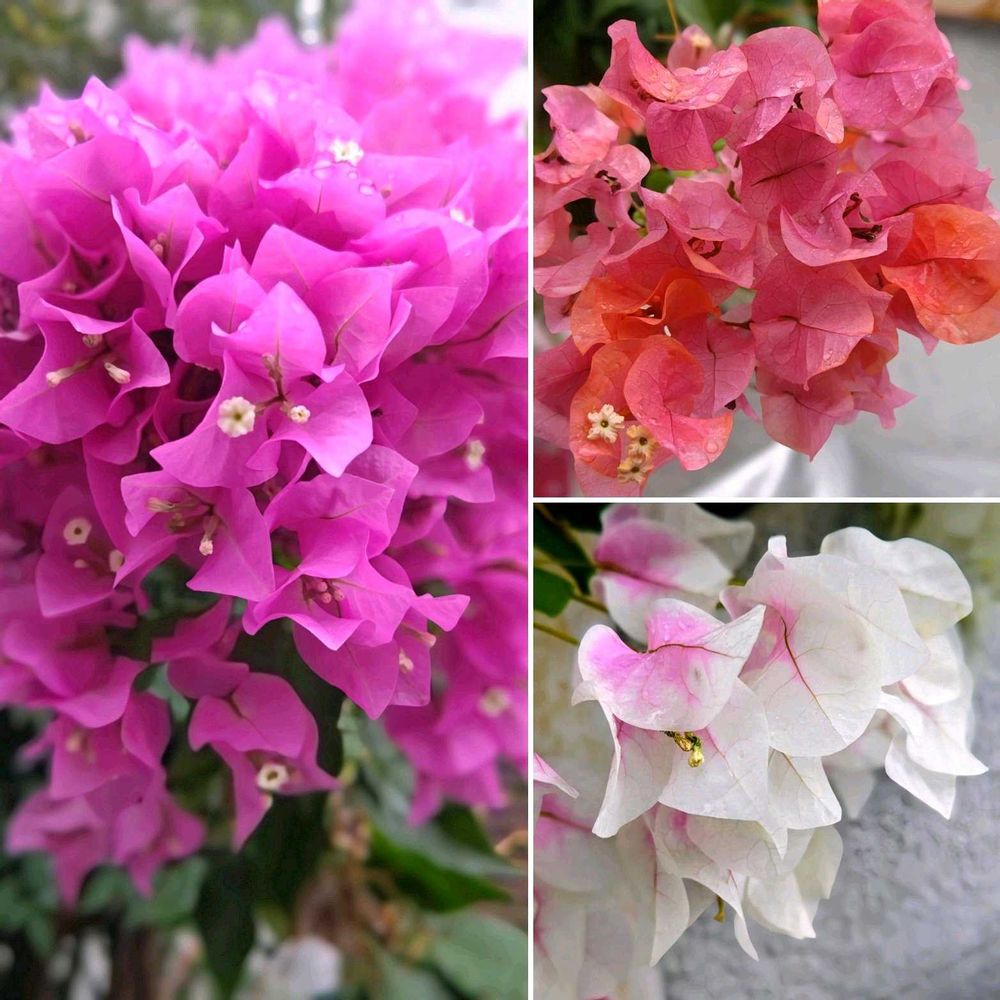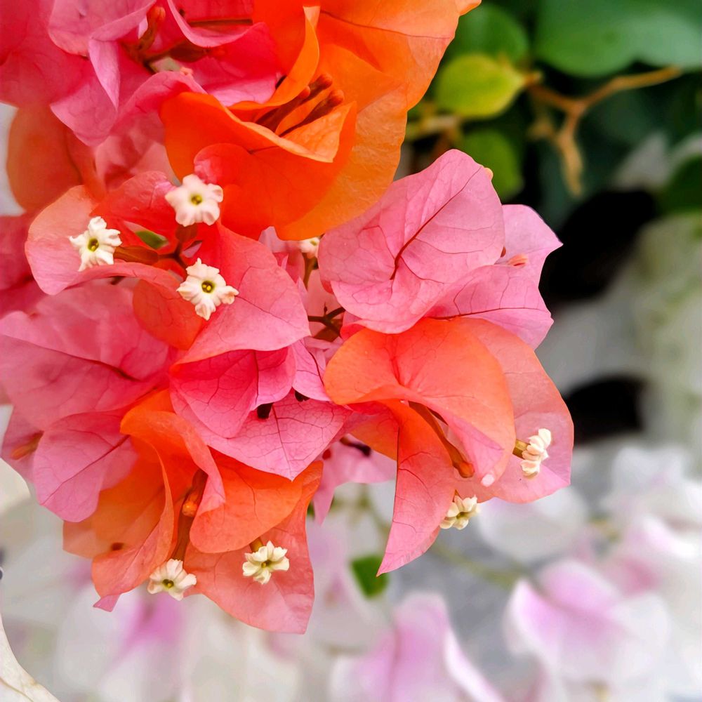 公園活動の帰り道、見たい‼️と思ってたオレンジ色🧡のブーゲンビリア。民家のブロック塀の中から、しだれ咲いてました。ピンクや白、微妙な色の花。何本の木が植えられているのか⁉️1本のようでもあり、別々の木のようでもあり・・・。