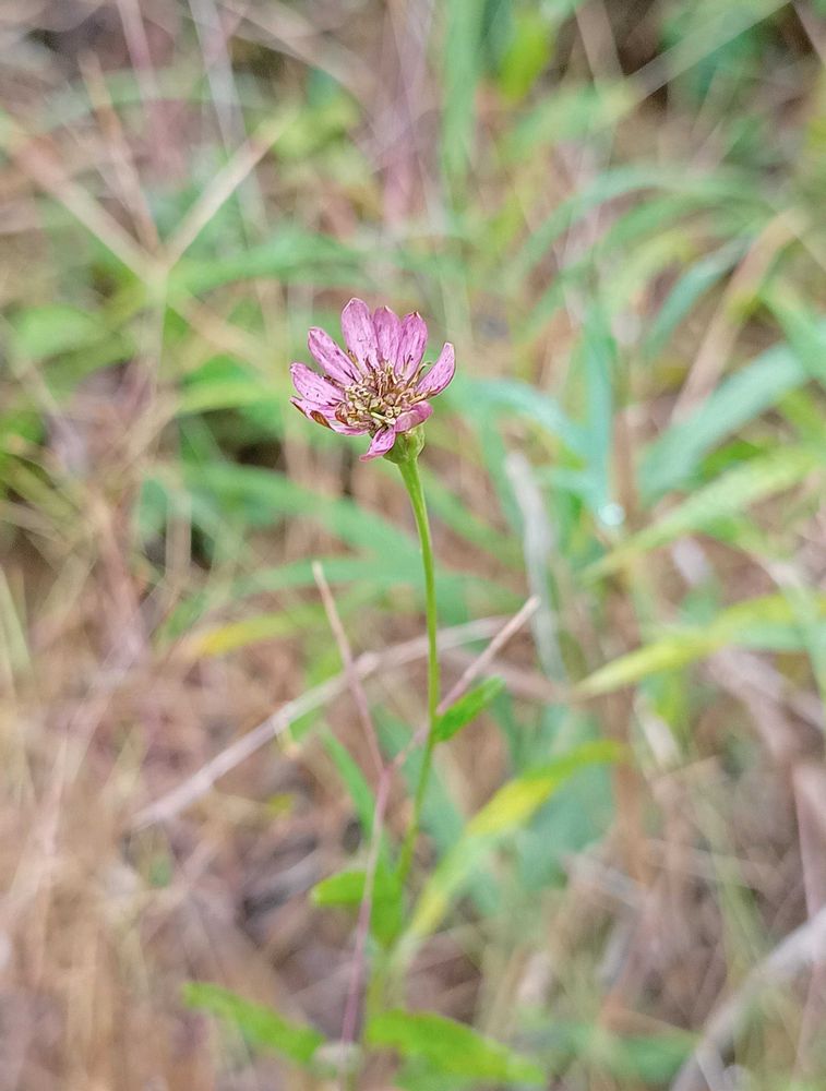 頭花は花数は少なく、径25mm、総苞は半球形で総苞片は3列。