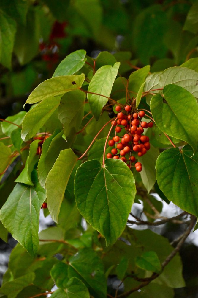 赤い小さな実がそこかしこに見られるようになりましたね。