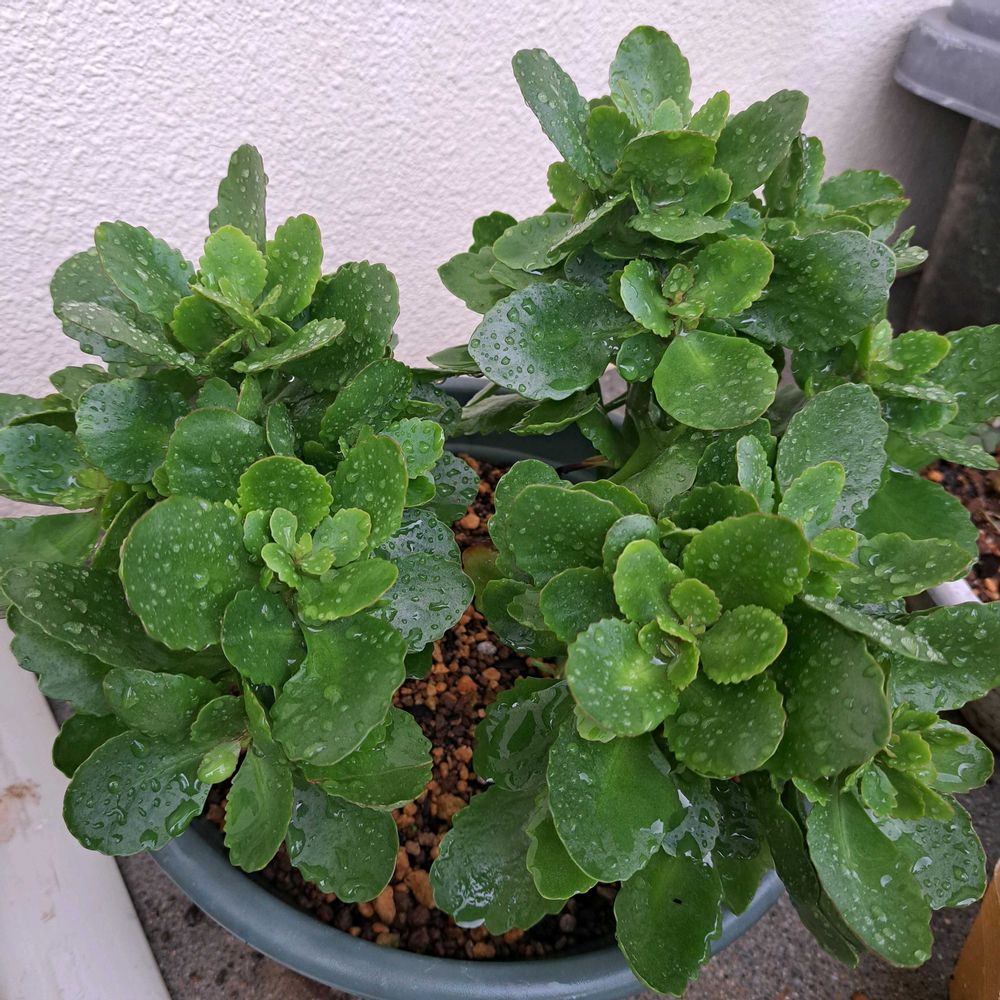 雨に打たれたカランコエ 花が咲くのいつかな?