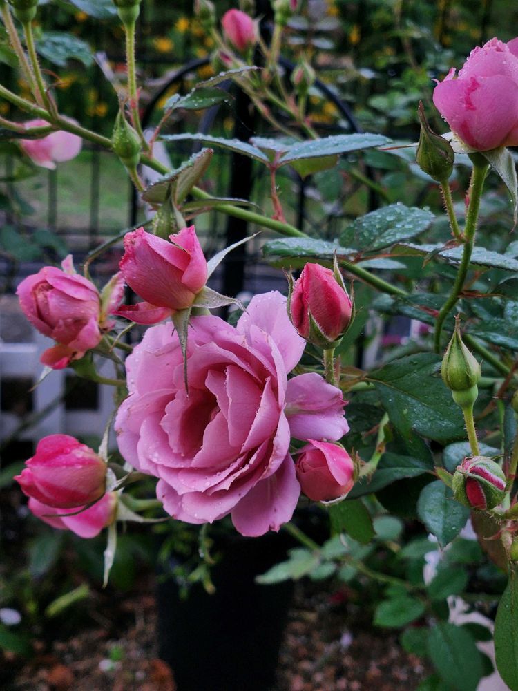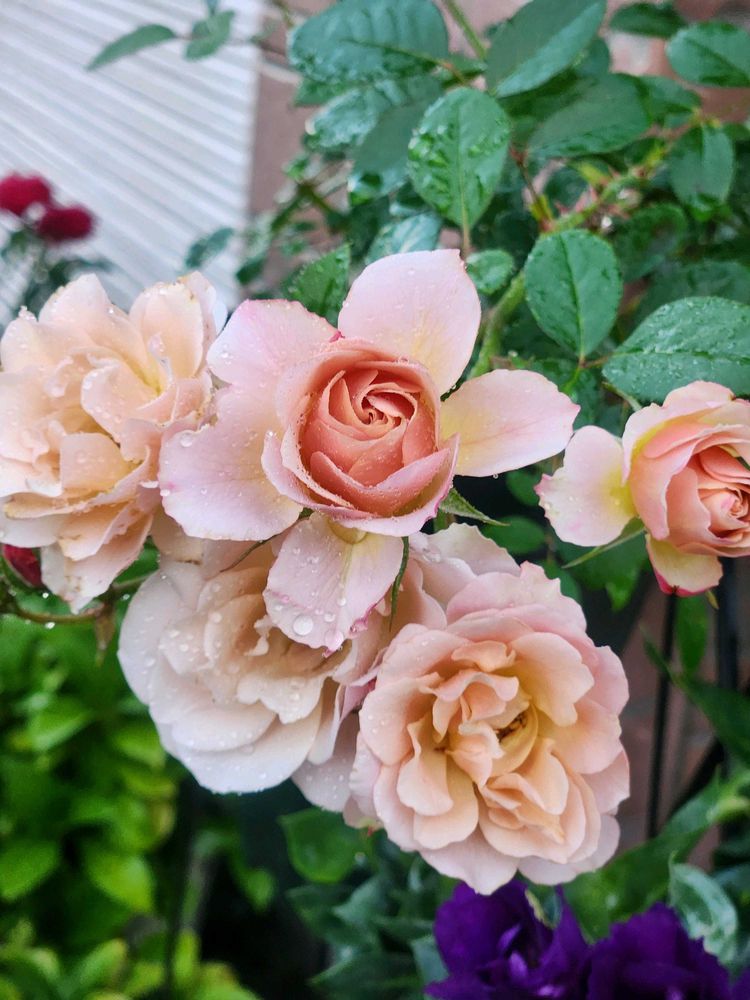 水滴を纏った薔薇の笑顔もとても素敵ですね。
