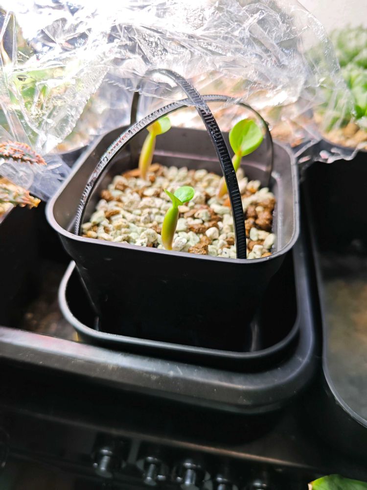 2024年3月22日に交配 2024年7月12日に結実した種を採取 2024年8月14日に種まき 2024年9月に発芽 その後、植え替えをして現在2025年7月に至る 今後の成長はアプリで記録 花が咲くまで継続